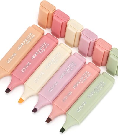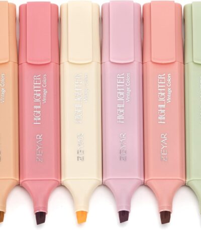 ZEYAR Highlighter Pen, vintage colors- Romantic Chisel Tip, Water Based, Quick Dry, No Bleed, for Bible Study Notes School Office (6 Romance colors)