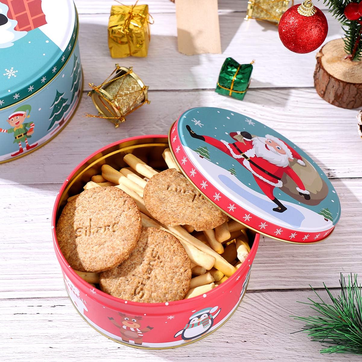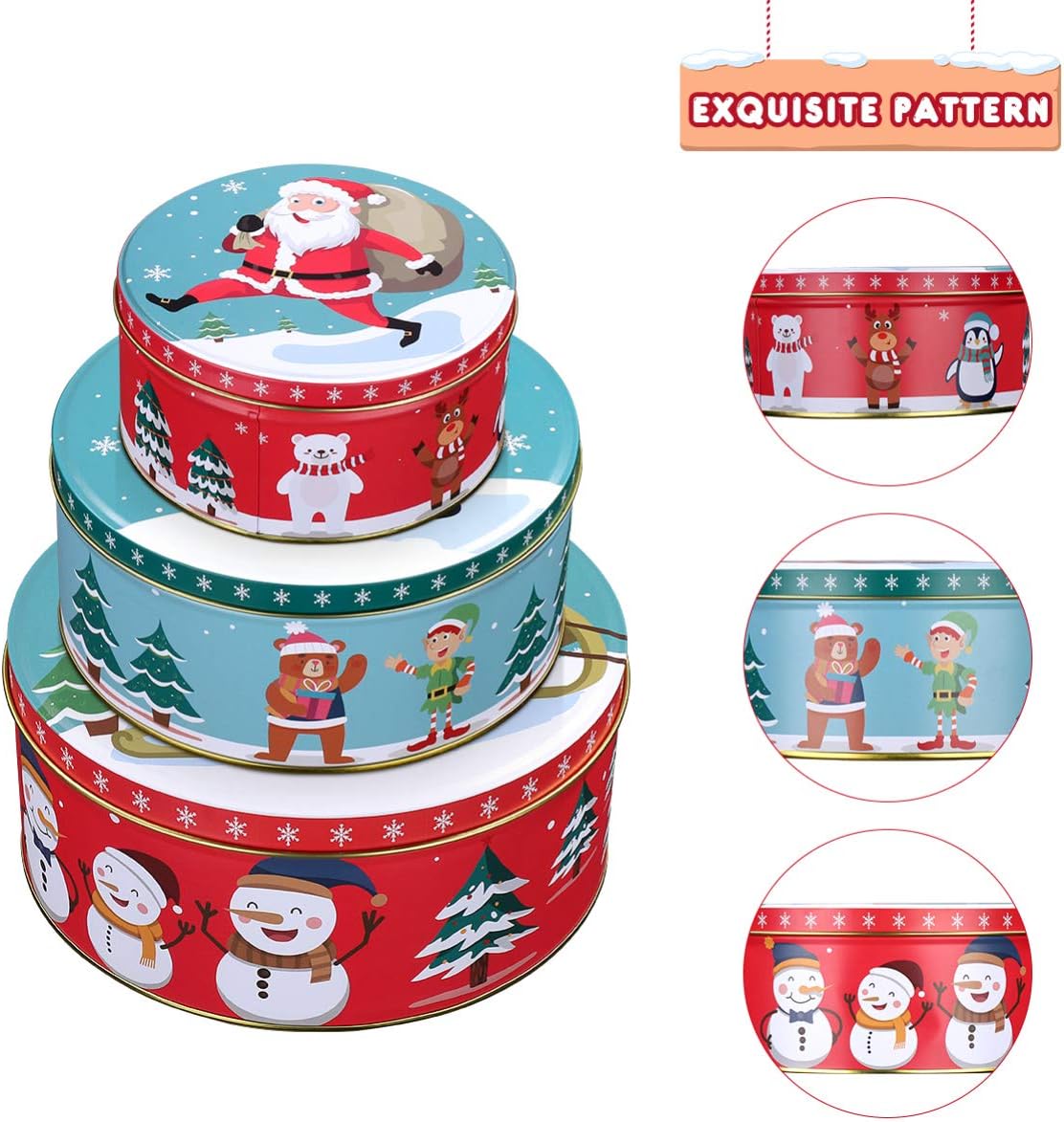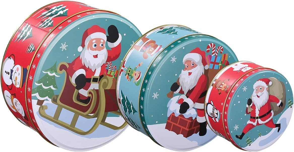 HEMOTON Premium Christmas Tinplate Cookie Tins Set of 3 – Decorative Cookie Gift Tins, Candies Biscuits Treat Boxes Small Gift Case