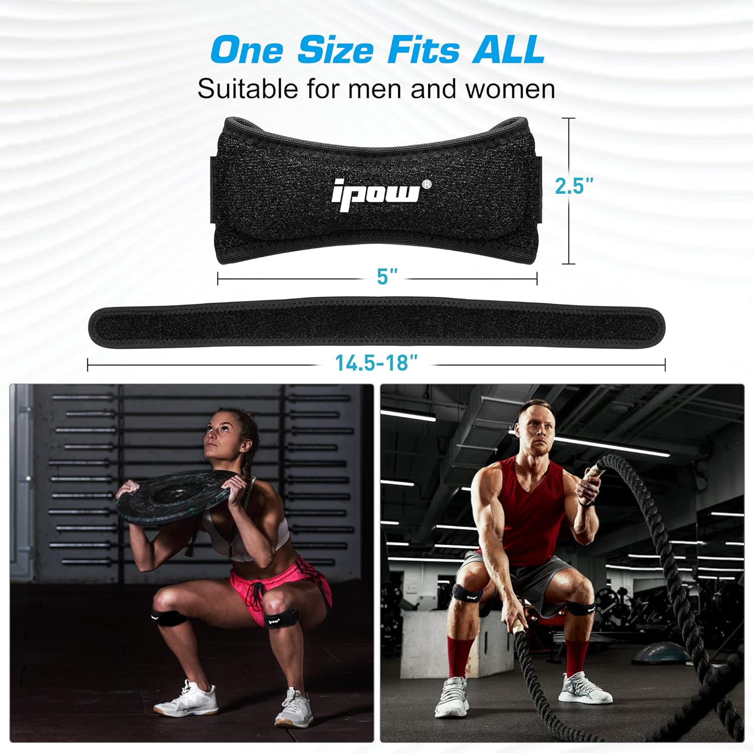 IPOW 2 Pack Knee Pain Relief & Patella Stabilizer Knee Strap Brace Support for Hiking, Soccer, Basketball, Running, Jumpers Knee, Tennis, Tendonitis, Volleyball & Squats, Black