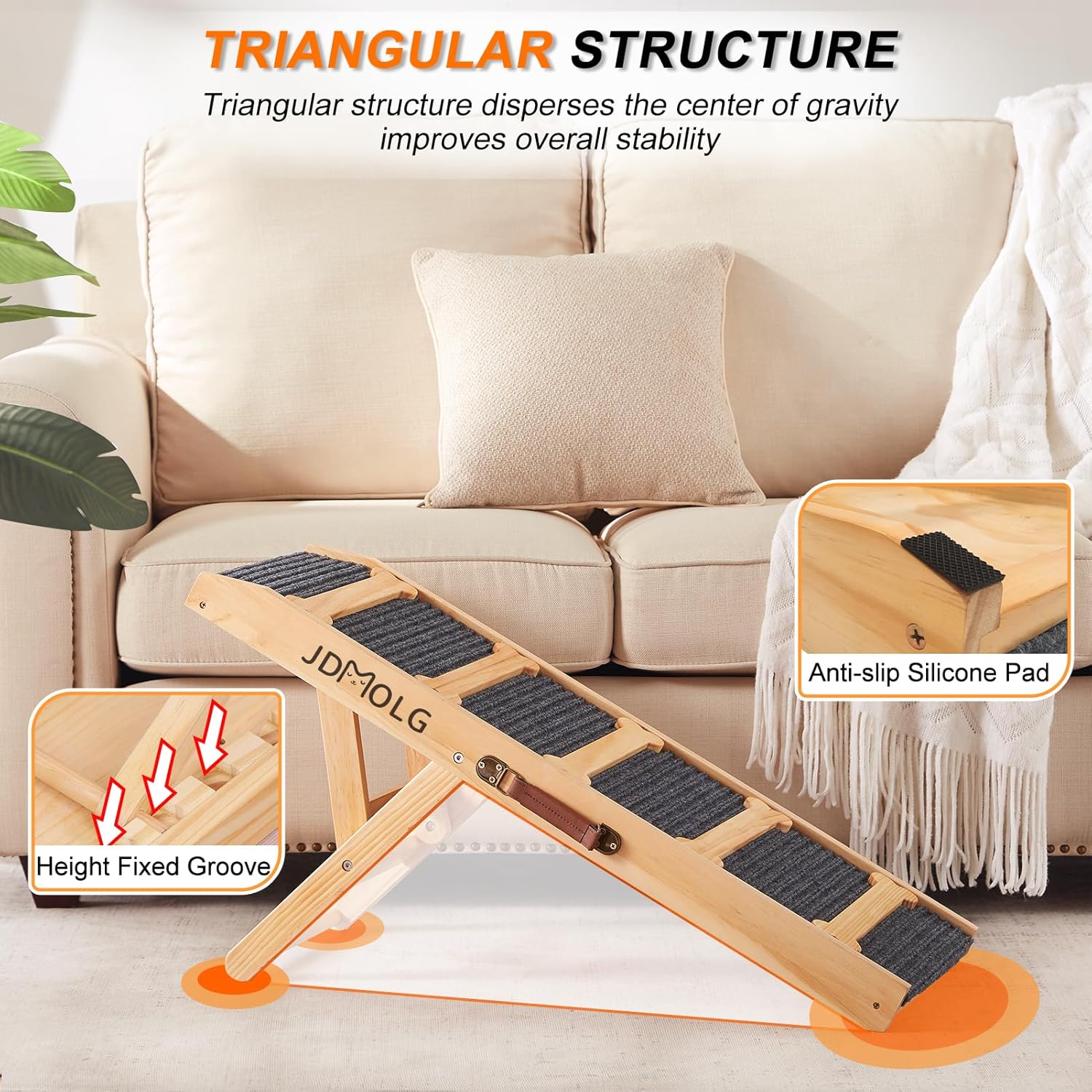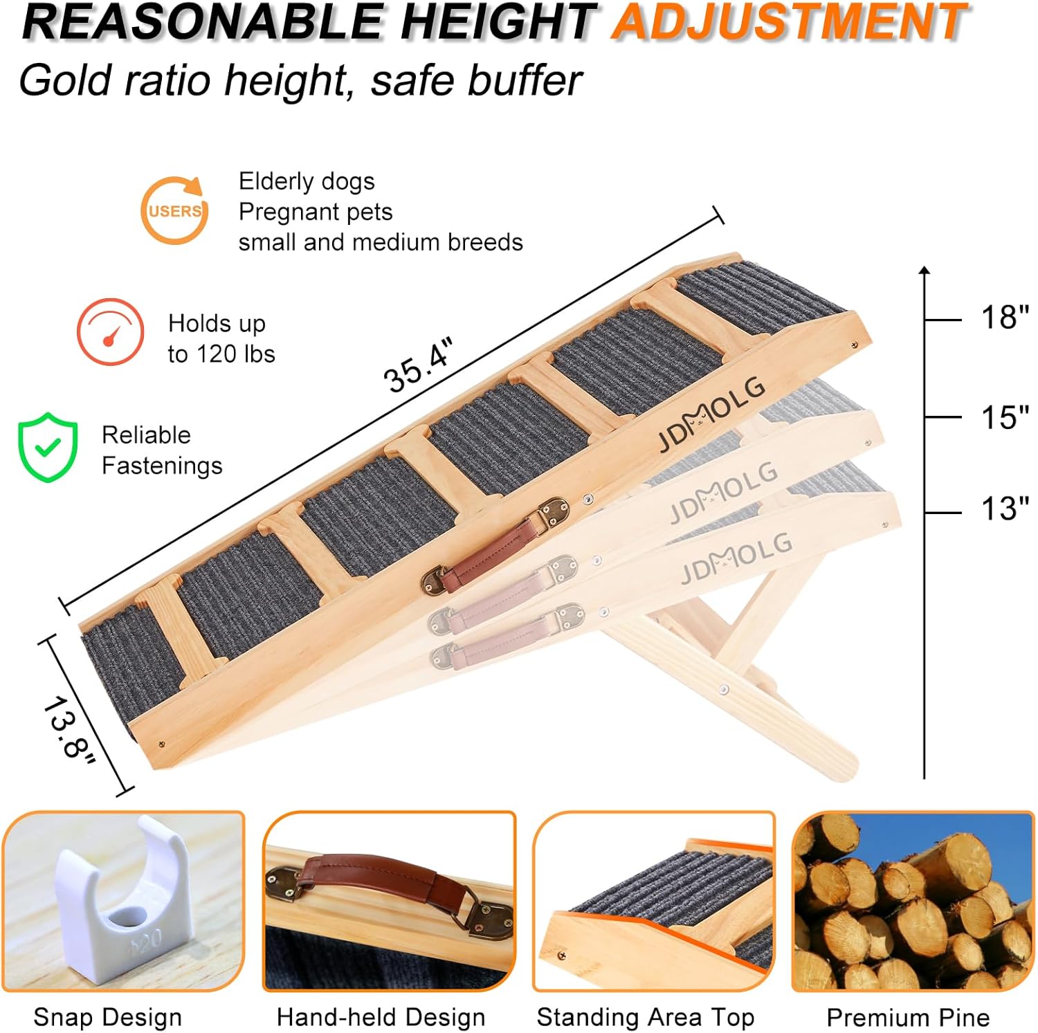 JDMOLG Dog Ramp for Bed – Wooden Folding Pet Ramp for Couch Portable Dog Ramps for Small Dogs – Adjustable Dog Ramp Bed Height from 13″ to 18″ with Non-Slip Traction Surface