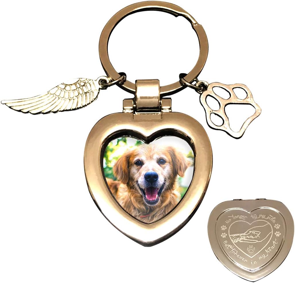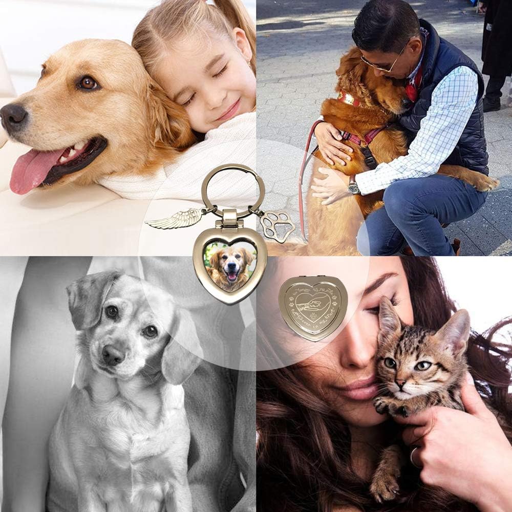 JOEZITON Pet Memorial Gifts (Opts) Passed Away Personalized Family Picture Frame or Keychain Jewelry Angel with Paws for Loss of Dogs or Cats.(K1)