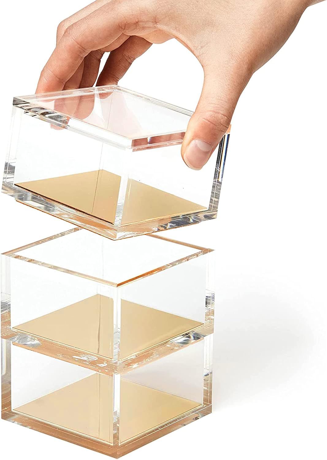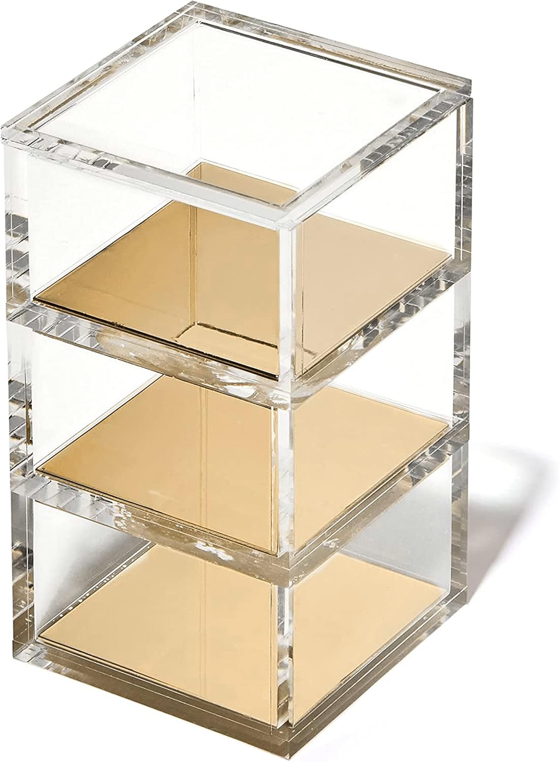 OfficeGoods 3 Tier Stackable Acrylic Organizer w/Gold Base – Functional & Elegant Desk Organizer for Office or Home – Helps Keep All Your Little Bits Together – Gold/Square