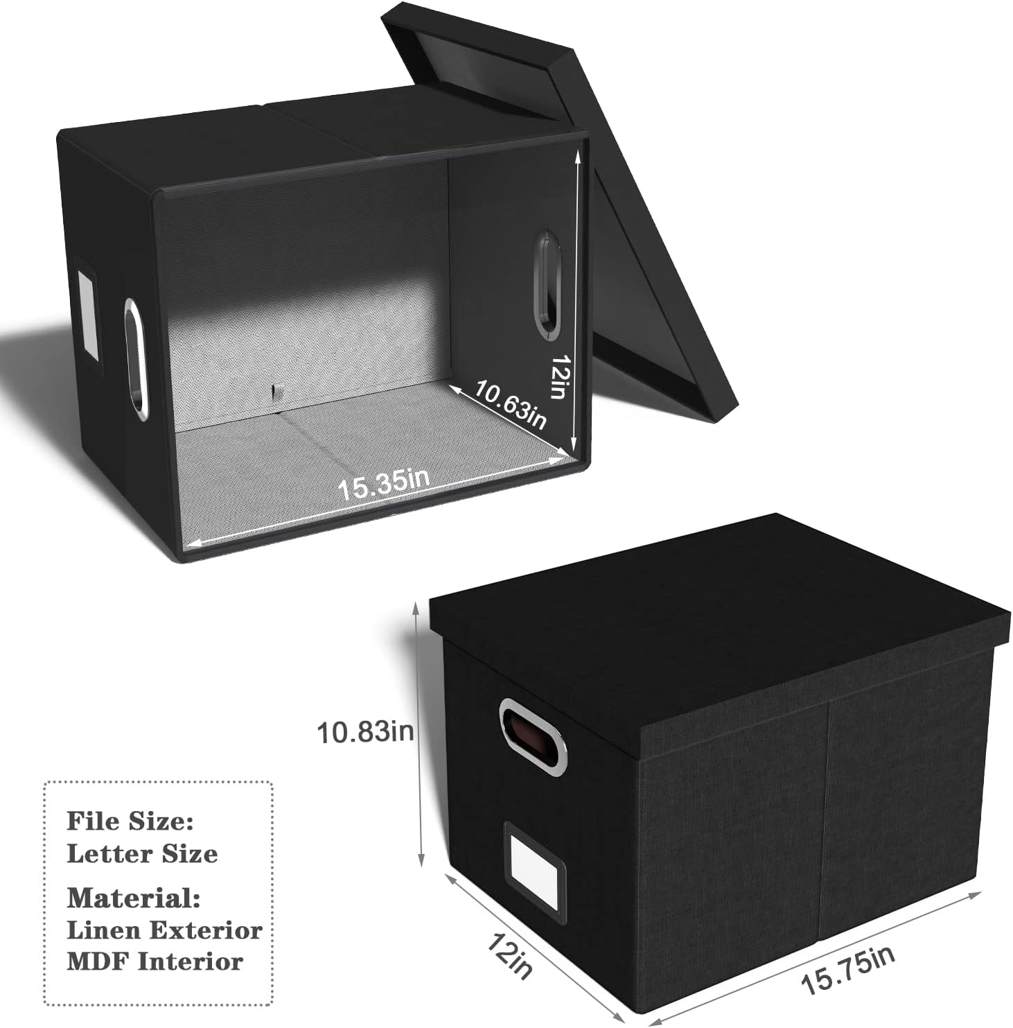 Oterri File Storage Organizer Box,Filing Box,Portable File Box with Lid,Fit for Letter/Legal File Folder Storage, Easy Slide Durable Hanging File Box for Office/Decor/Home,1 Pack,Black-Box only