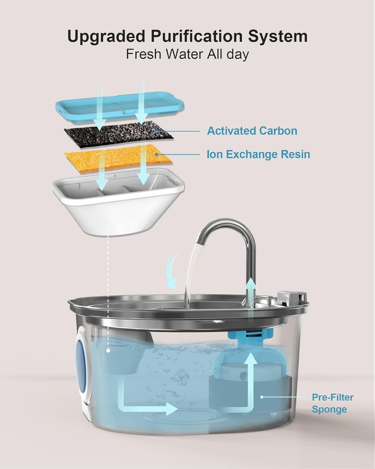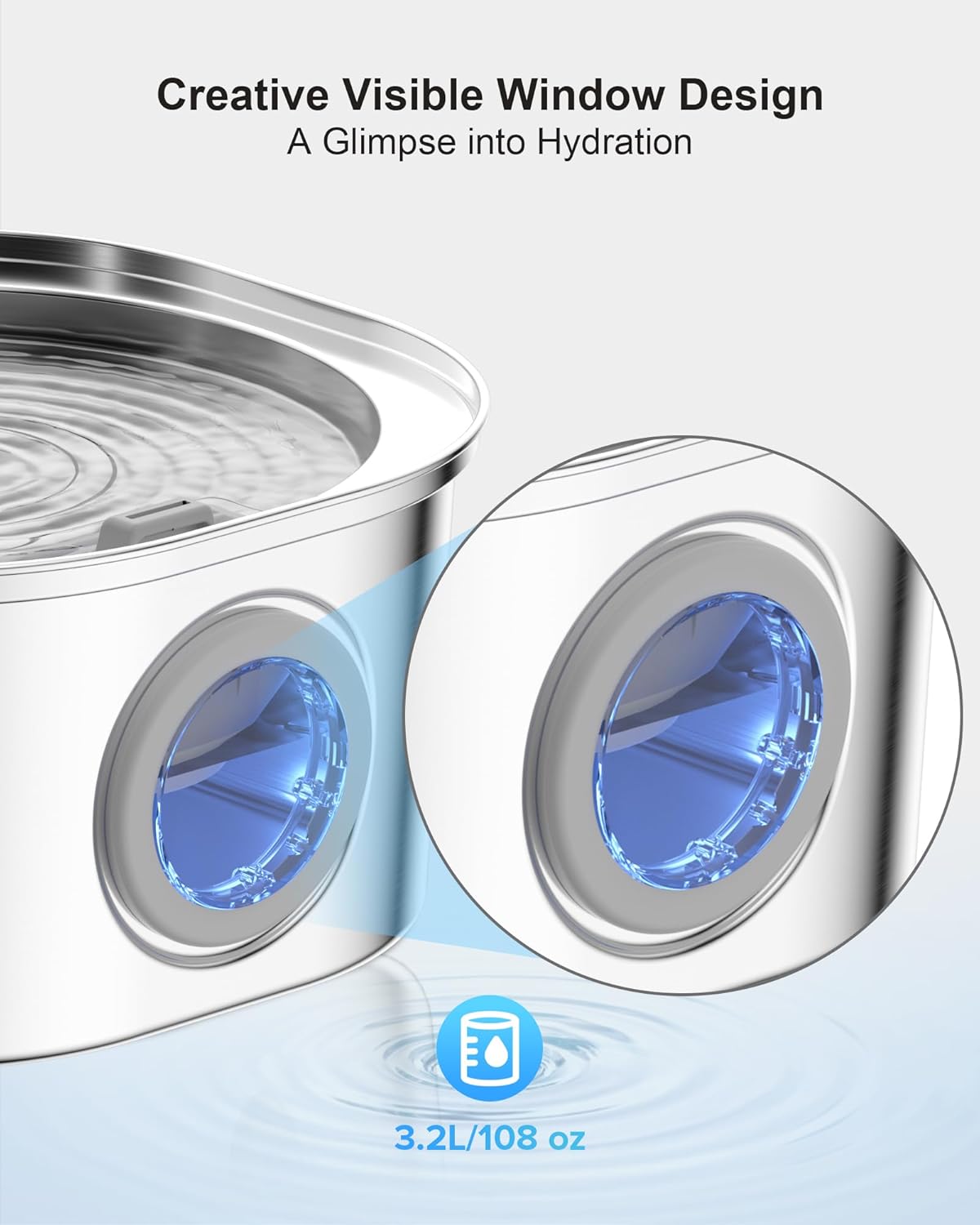 PEKTACO Cat Water Fountain – 3.2L/108oz Stainless Steel Pet Water Fountain for Cats/Dogs Inside with Water Level Window