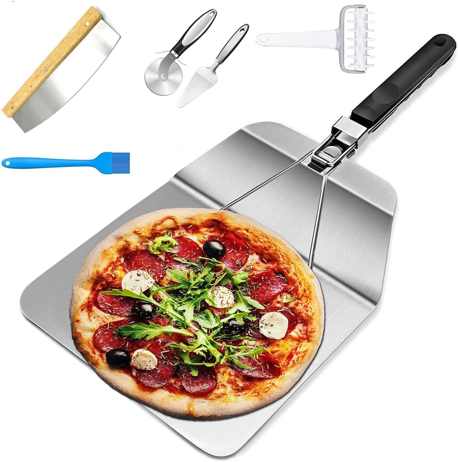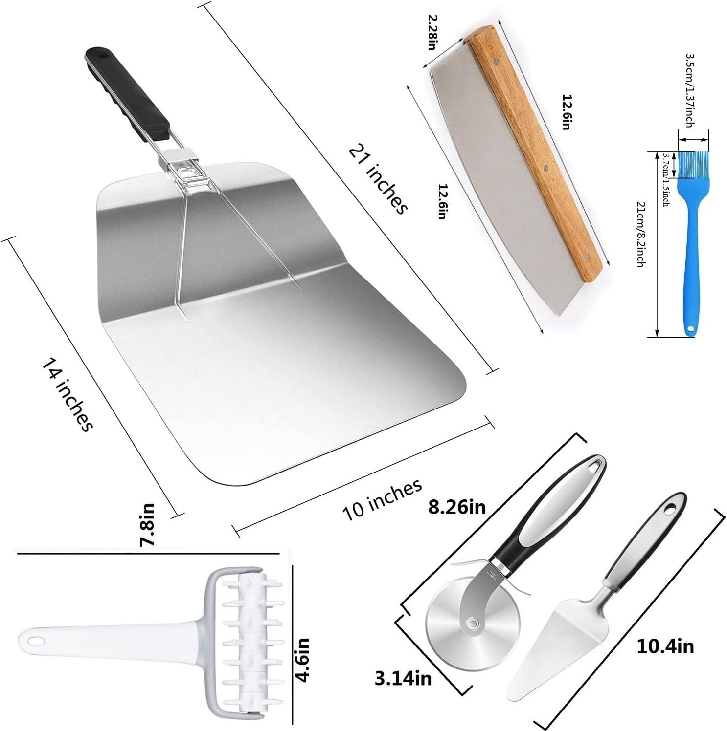Pizza Making Kit (6 Pc Set) with 14 inch Pizza Cutter, Folding Pizza Peel, Cutter Rocker, Pizza Server, Cutter Wheel, Dough Docker, Oil Brush – DIY Homemade Pizza Oven Accessories & Tools