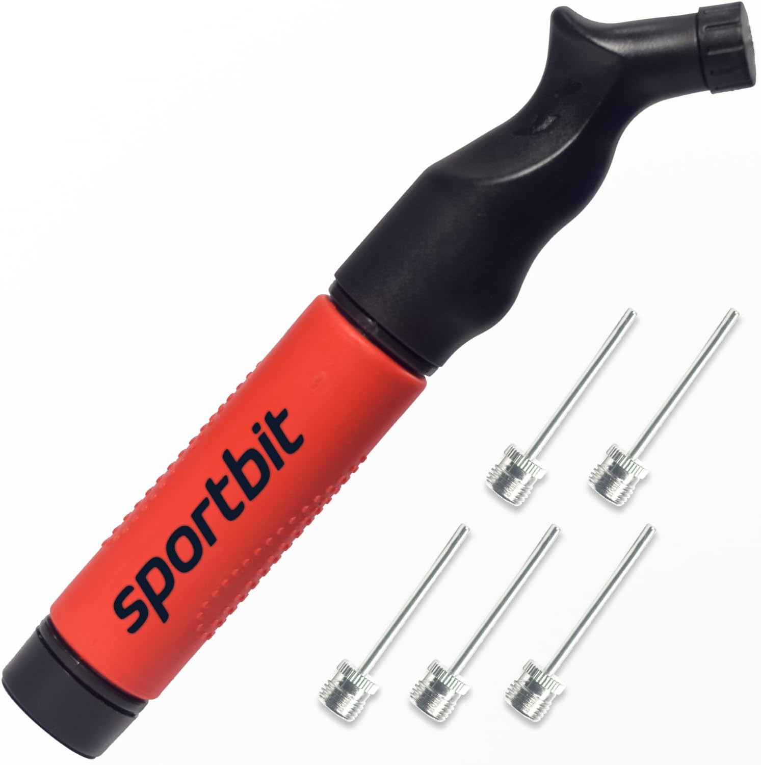 SPORTBIT Ball Pump with 5 Needles – Push & Pull Inflating System – Great for All Sports Balls – Volleyball Pump, Basketball Inflator, Football & Soccer Ball Air Pump – Goes with Needles Set