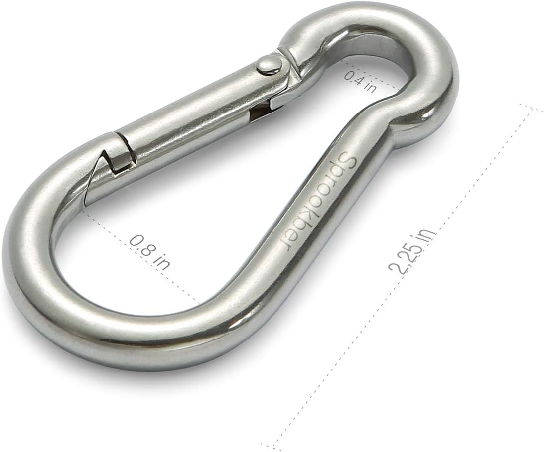 sprookber Stainless Steel Spring Snap Hook Carabiner – 304 Stainless Steel Clips, Set of 6